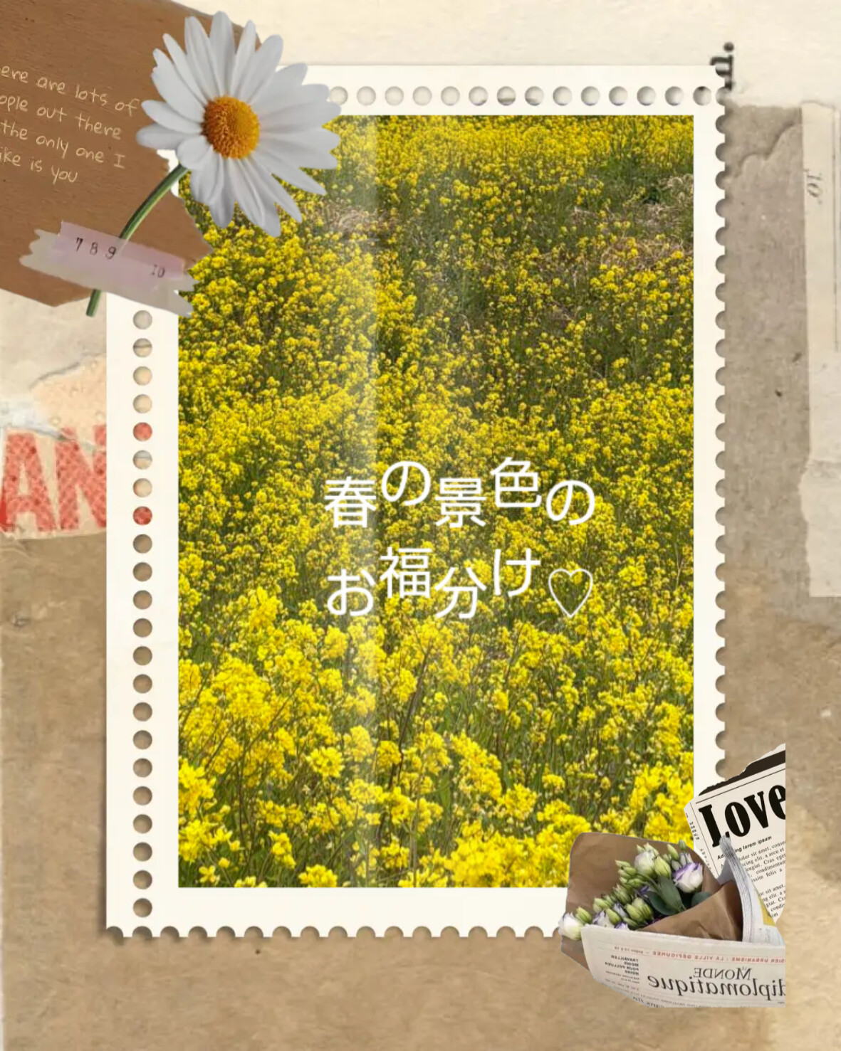 Mar 14 春のお福分け 2026/3/14 13:26 昨日は桜(ヘンに動画投稿してます)今日は菜の花春のお福分け貴方様に受け取ってもらえた嬉しいなそして貴方様に逢えたらもうひとつ福が増える気がしてる確定している出勤日が18日(水)です出勤日のどこかで⋯日記に訪れてくださった貴方様に見つけてもらえたら嬉しいな♪逢える?逢いたいな⋯えま